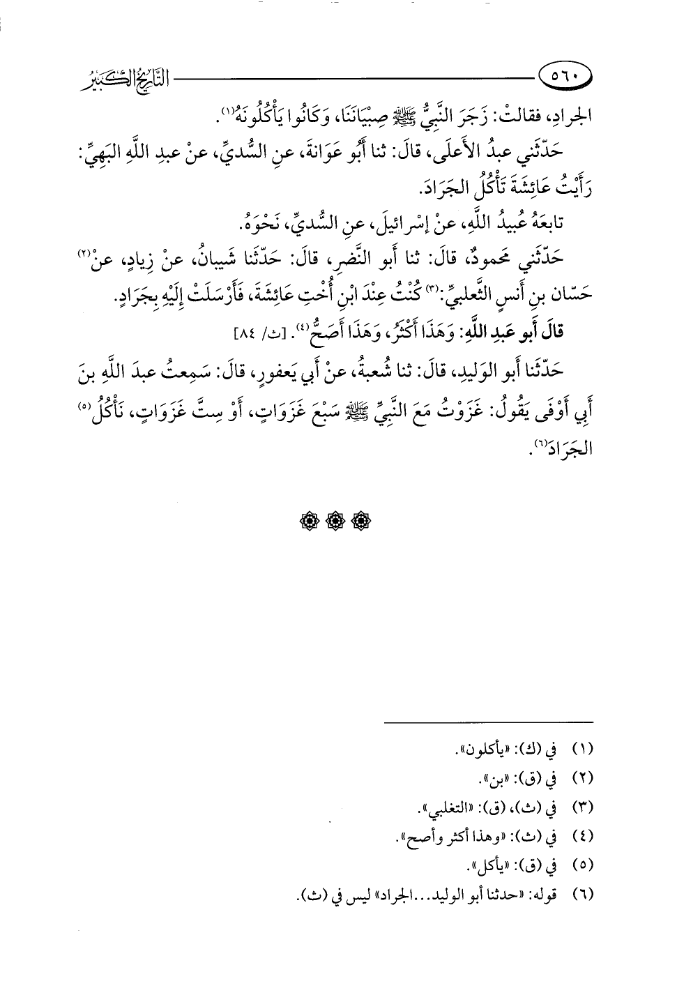 (¬٦) قوله: "حدثنا أبو الوليد. . . الجراد" ليس في (ث).