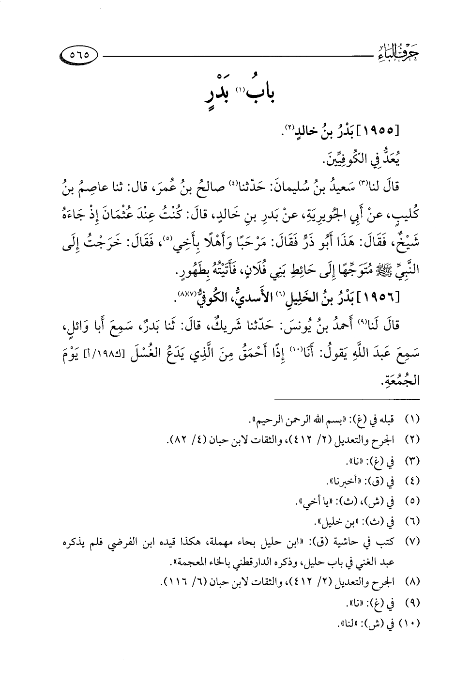 [١٩٥٦] بَدْرُ بنُ الخَلِيلِ (¬٦) الأَسديُّ، الكُوفيُّ (¬٧) (¬٨).