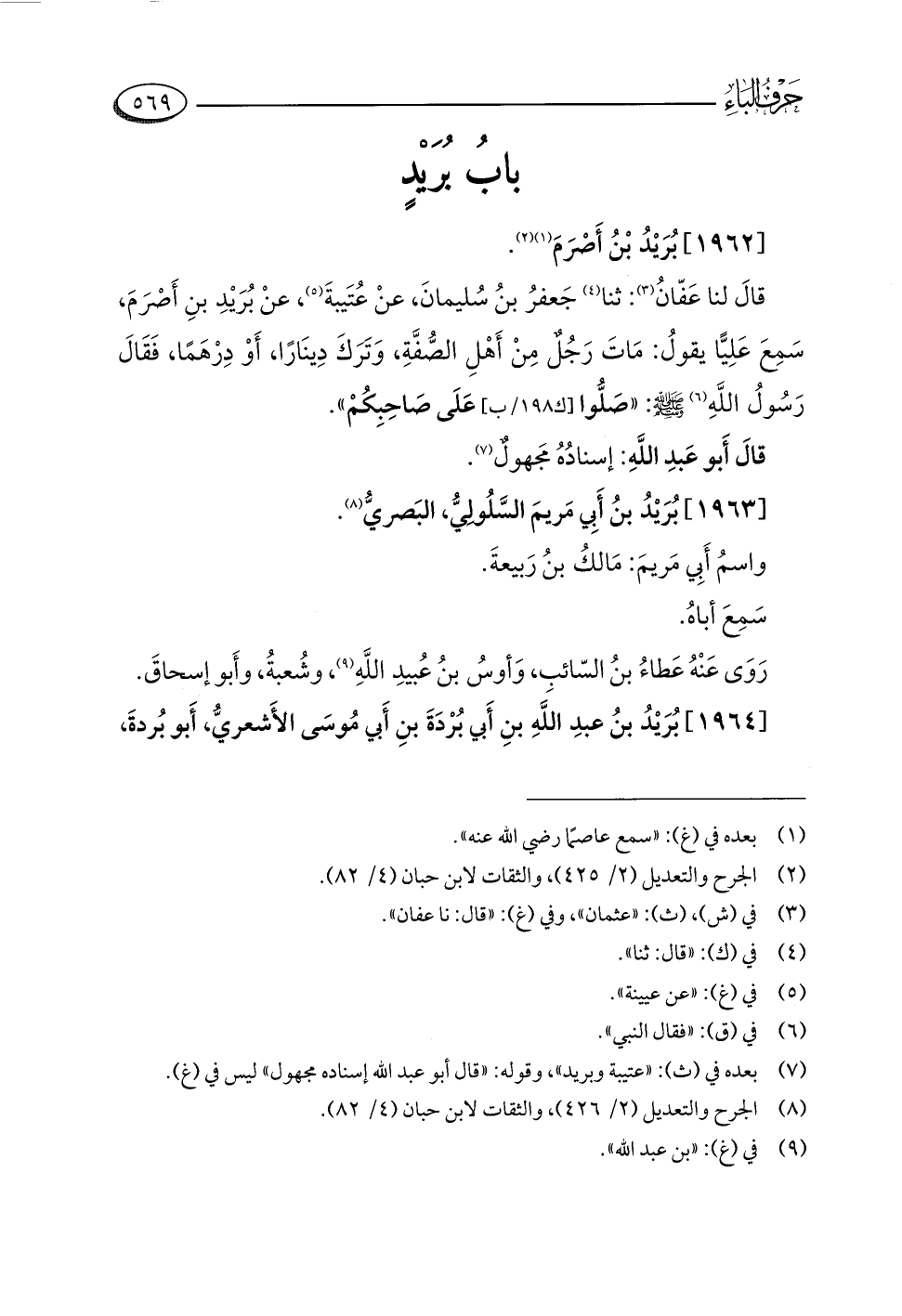 [١٩٦٤] بُرَيْدُ بنُ عبدِ اللَّهِ بنِ أَبي بُرْدَةَ بنِ أَبي مُوسَى الأَشعريُّ، أَبو بُردةَ،
