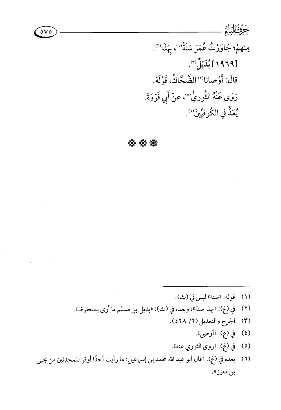 (¬٢) في (غ): "بهذا سنة"، وبعده في (ث): "بديل بن مسلم ما أرى بمحفوظ".