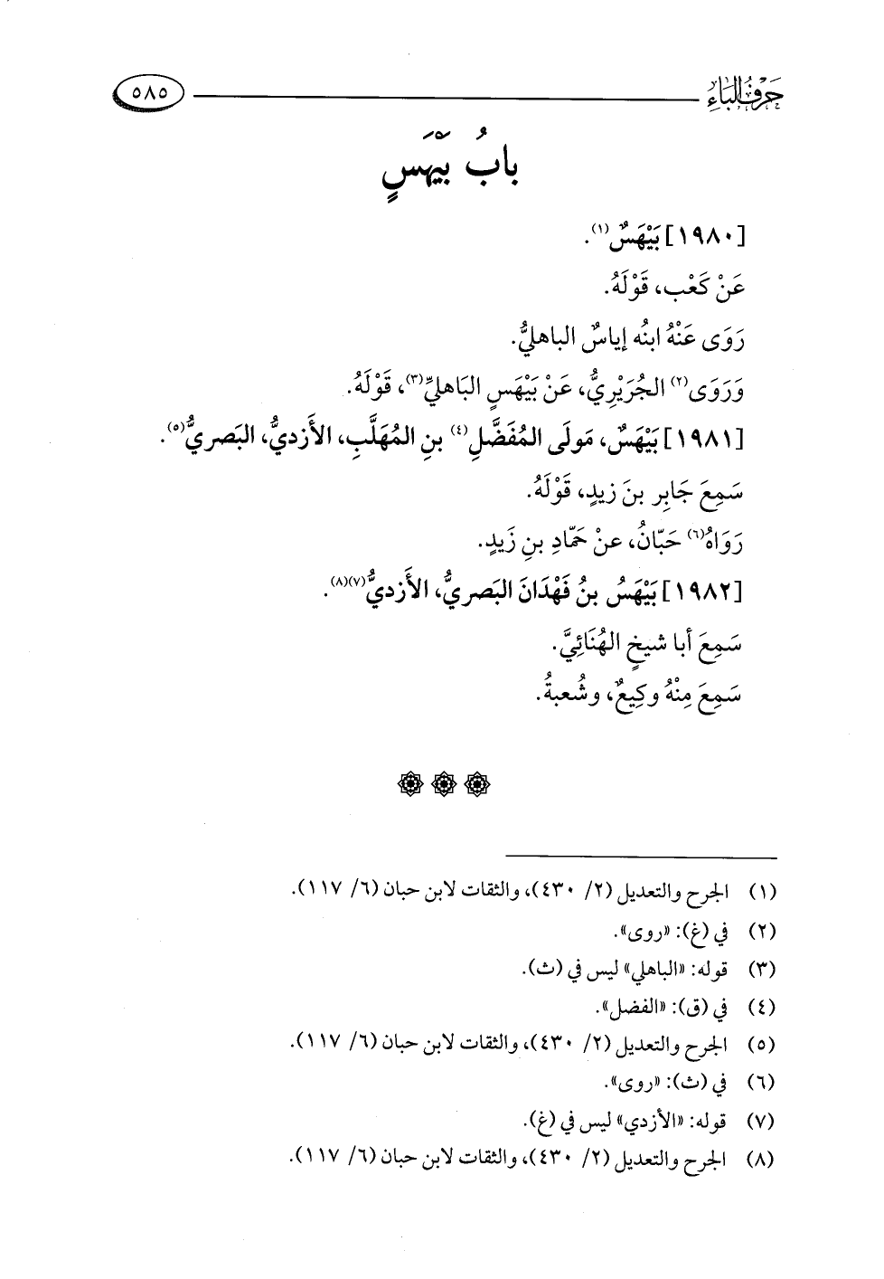 [١٩٨١] بَيْهَسٌ، مَولَى المُفَضَّلِ (¬٤) بنِ المُهَلَّبِ، الأَزديُّ، البَصريُّ (¬٥).