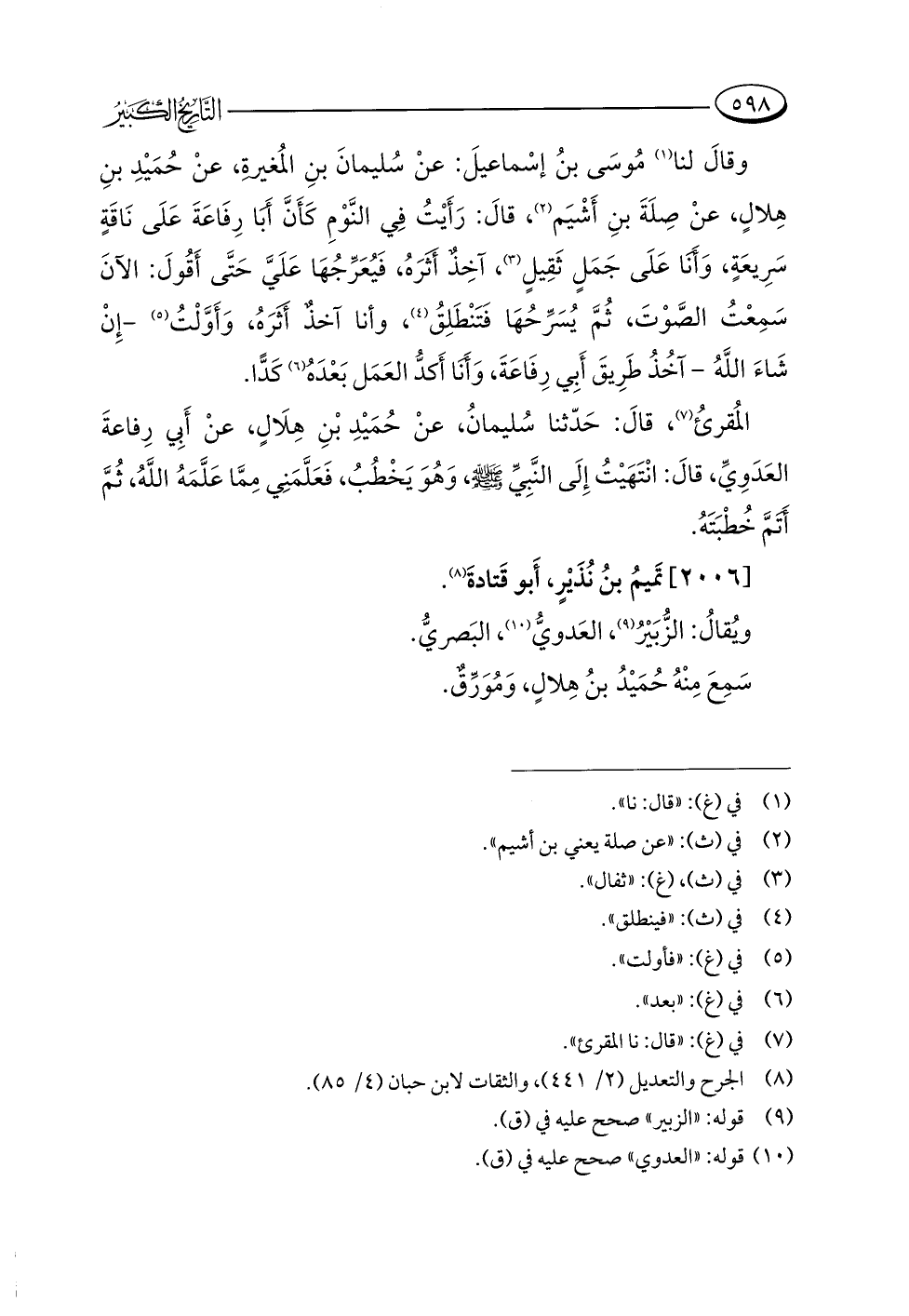 [٢٠٠٦] تَميمُ بنُ نُذَيْرٍ، أَبو قَتادةَ (¬٨).
