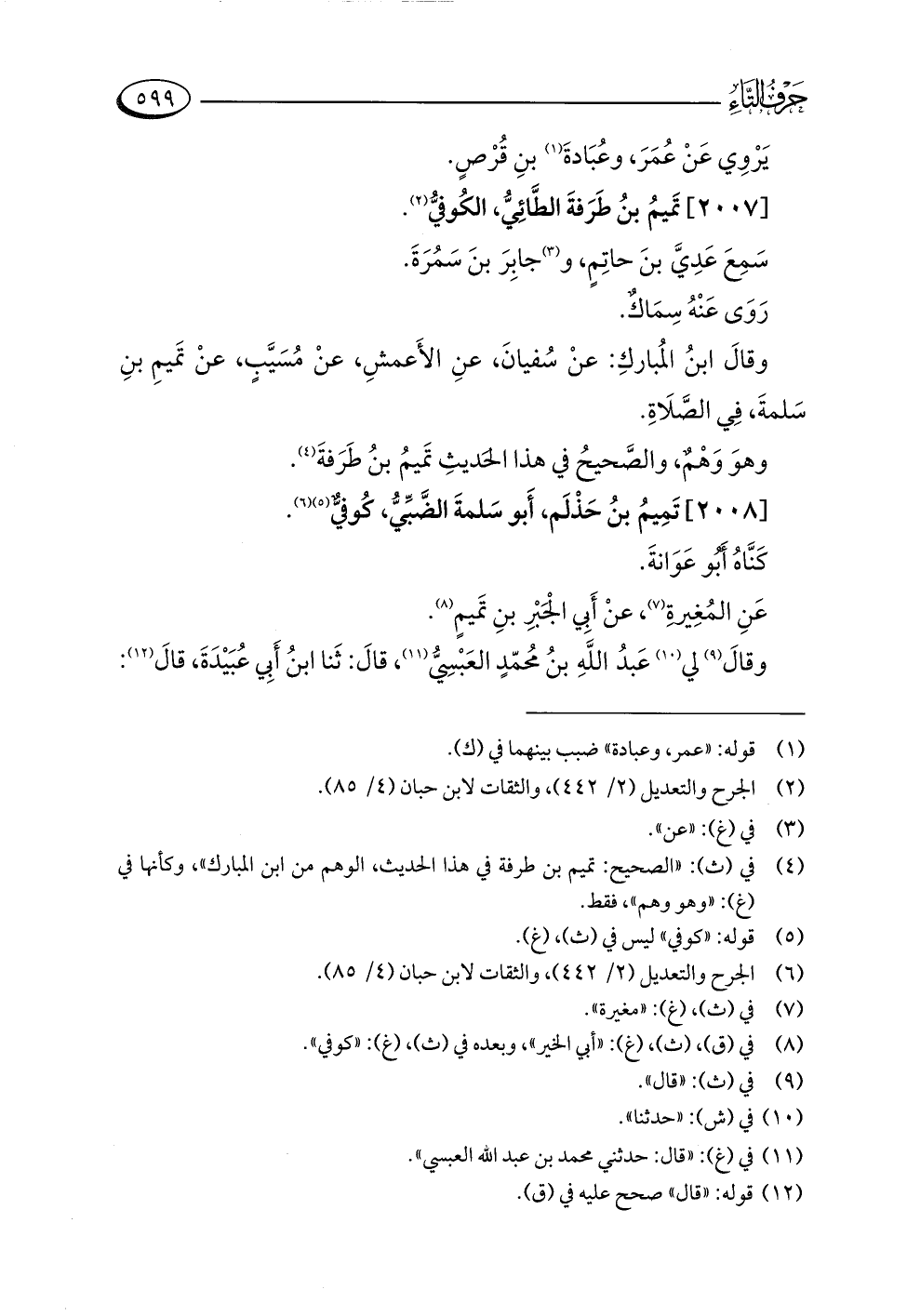 (¬٤) في (ث): "الصحيح: تميم بن طرفة في هذا الحديث، الوهم من ابن المبارك"، وكأنها في (غ): "وهو وهم"، فقط.