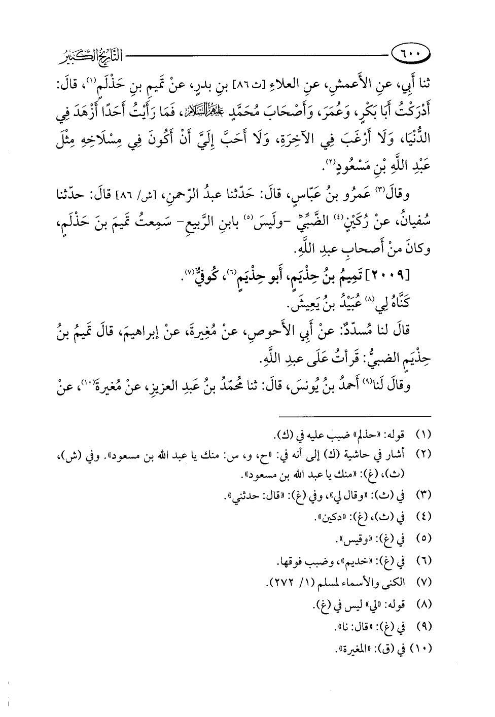 [٢٠٠٩] تَمِيمُ بنُ حِذْيَمٍ، أَبو حِذْيَمٍ (¬٦)، كُوفيٌّ (¬٧).
