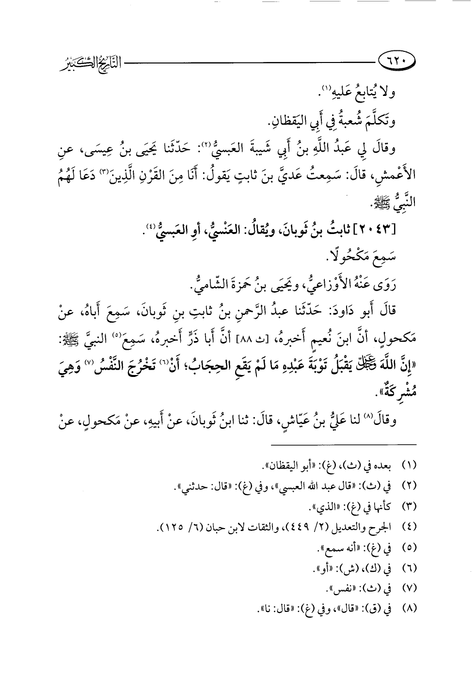 (¬٤) الجرح والتعديل (٢/ ٤٤٩)، والثقات لابن حبان (٦/ ١٢٥).