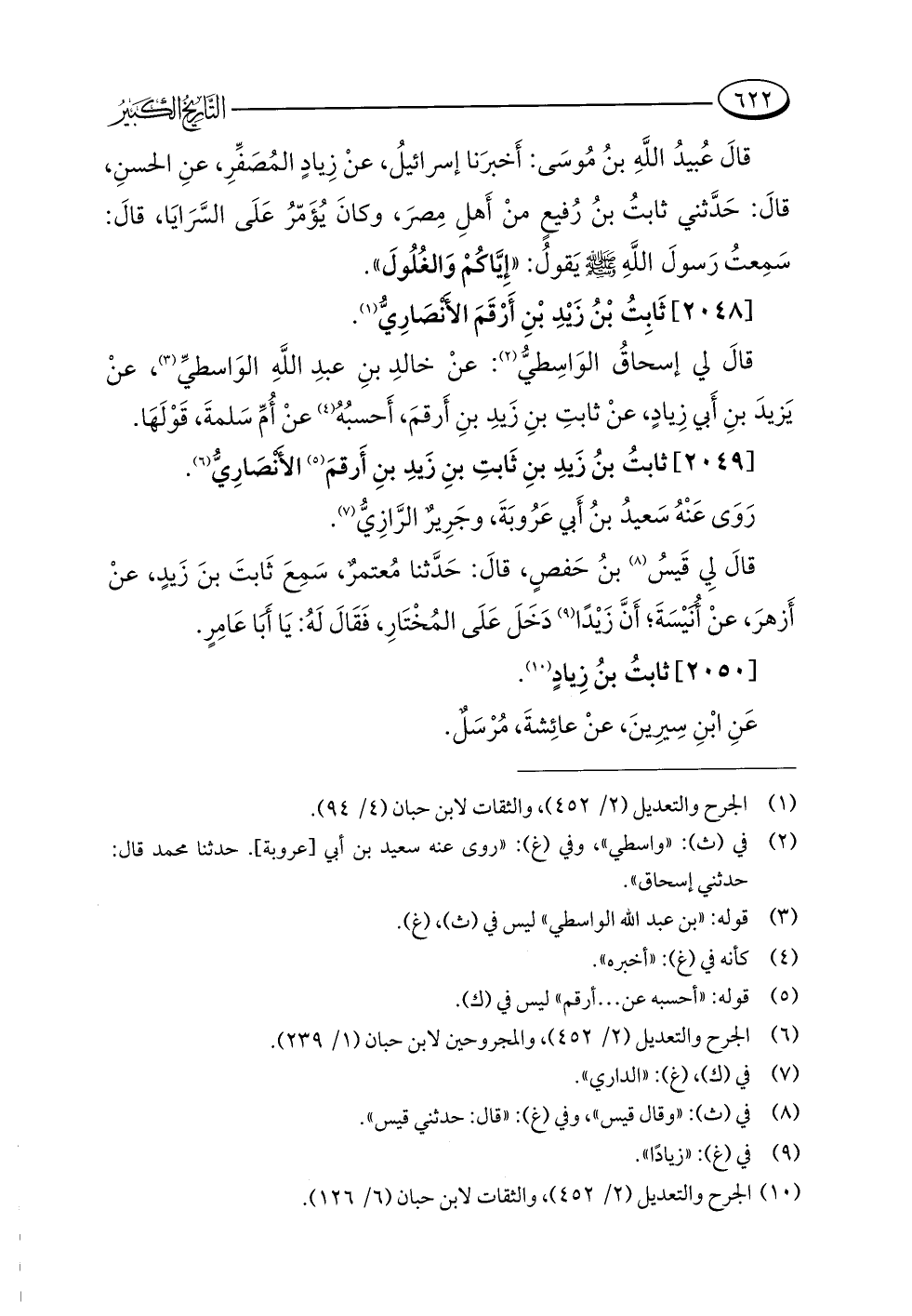 [٢٠٤٩] ثابتُ بنُ زَيدِ بنِ ثَابتِ بنِ زَيدِ بنِ أَرقمَ (¬٥) الأَنْصَارِيُّ (¬٦).