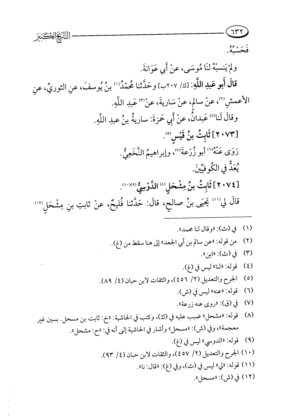 (¬٨) قوله: "مشحل" ضبب عليه في (ك)، وكتب في الحاشية: "خ: ثابت بن مسحل. بسين غير معجمة"، وفي (ش): "مسحل" وأشار في الحاشية إلى أنه في: "ح: مشحل".