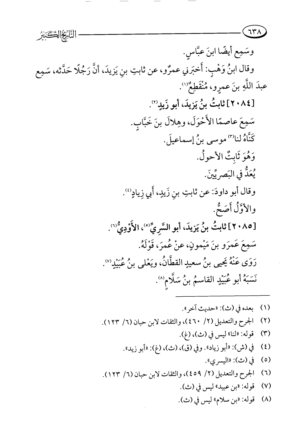 كتاب التاريخ الكبير للبخاري - ت الدباسي والنحال (اسم الجزء: 2)