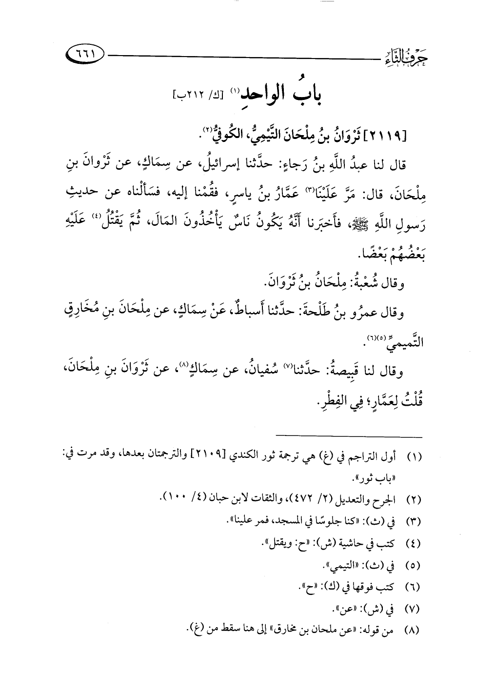 (¬١) أول التراجم في (غ) هي ترجمة ثور الكندي [٢١٠٩]، والترجمتان بعدها، وقد مرت في: "باب ثور".