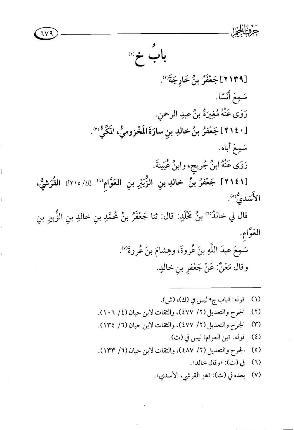 [٢١٤١] جَعْفرُ بنُ خالدِ بنِ الزُّبَير بنِ العَوَّامِ (¬٤) القُرَشيُّ، الأَسَديُّ (¬٥).