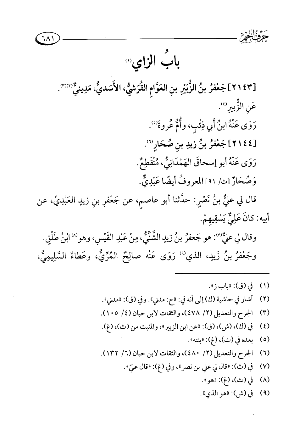 [٢١٤٣] جَعْفرُ بنُ الزُّبَيْرِ بنِ العَوَّامِ القُرَشيُّ، الأَسَديُّ، مَدِينيٌّ (¬٢) (¬٣).