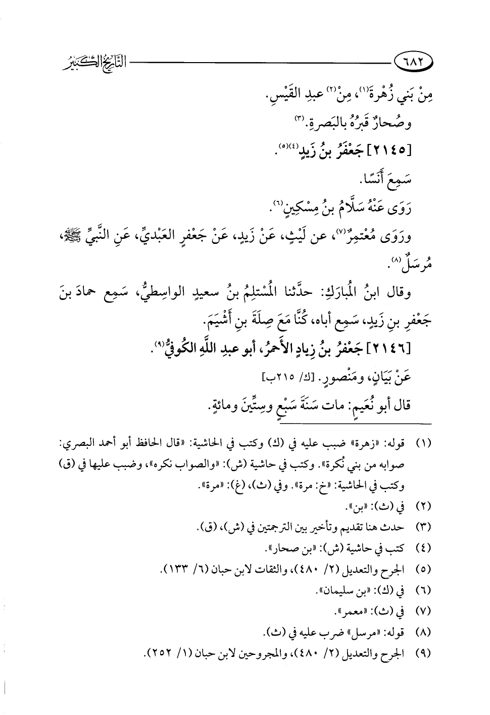 [٢١٤٦] جَعْفرُ بنُ زِيادٍ الأَحمرُ، أَبُو عبدِ اللَّهِ الكُوفيُّ (¬٩).