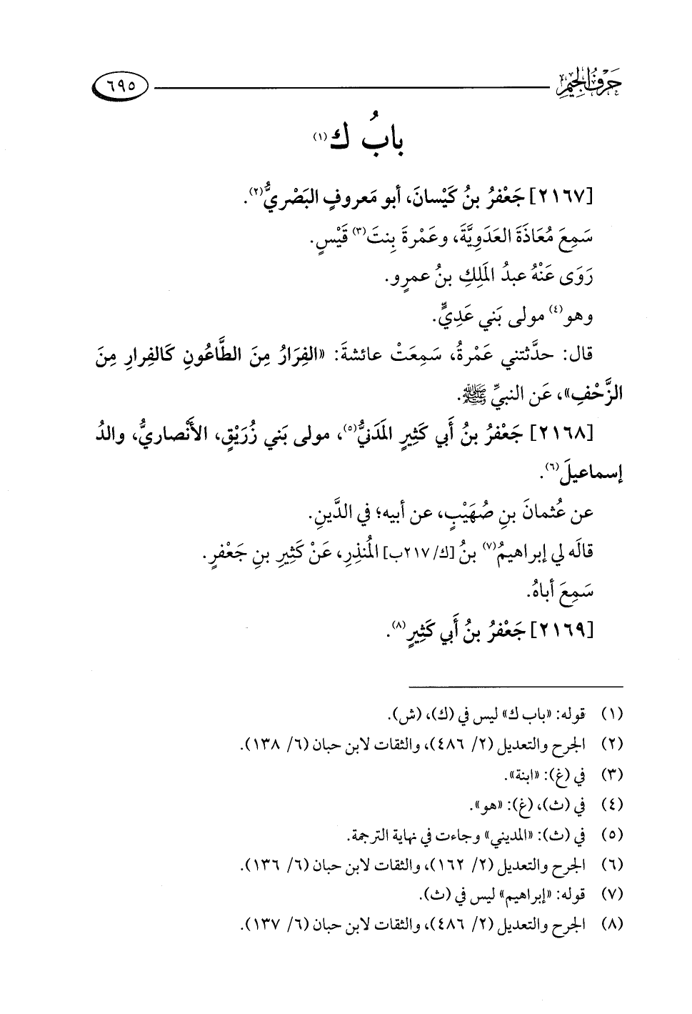 (¬٨) الجرح والتعديل (٢/ ٤٨٦)، والثقات لابن حبان (٦/ ١٣٧).