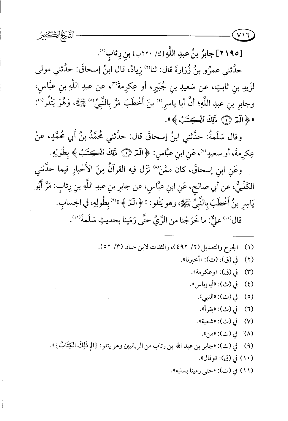 (¬٩) في (ث): "جابر بن عبد اللَّه بن رئاب من الربانيين وهو يتلو: {الم ذَلِكَ الْكِتَابُ} ".