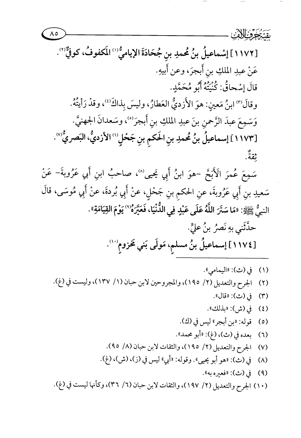 [١١٧٢] إسْماعيلُ بنُ مُحمدِ بنِ جُحَادَةَ الإياميُّ (¬١) المَكفوفُ، كوفيٌّ (¬٢).