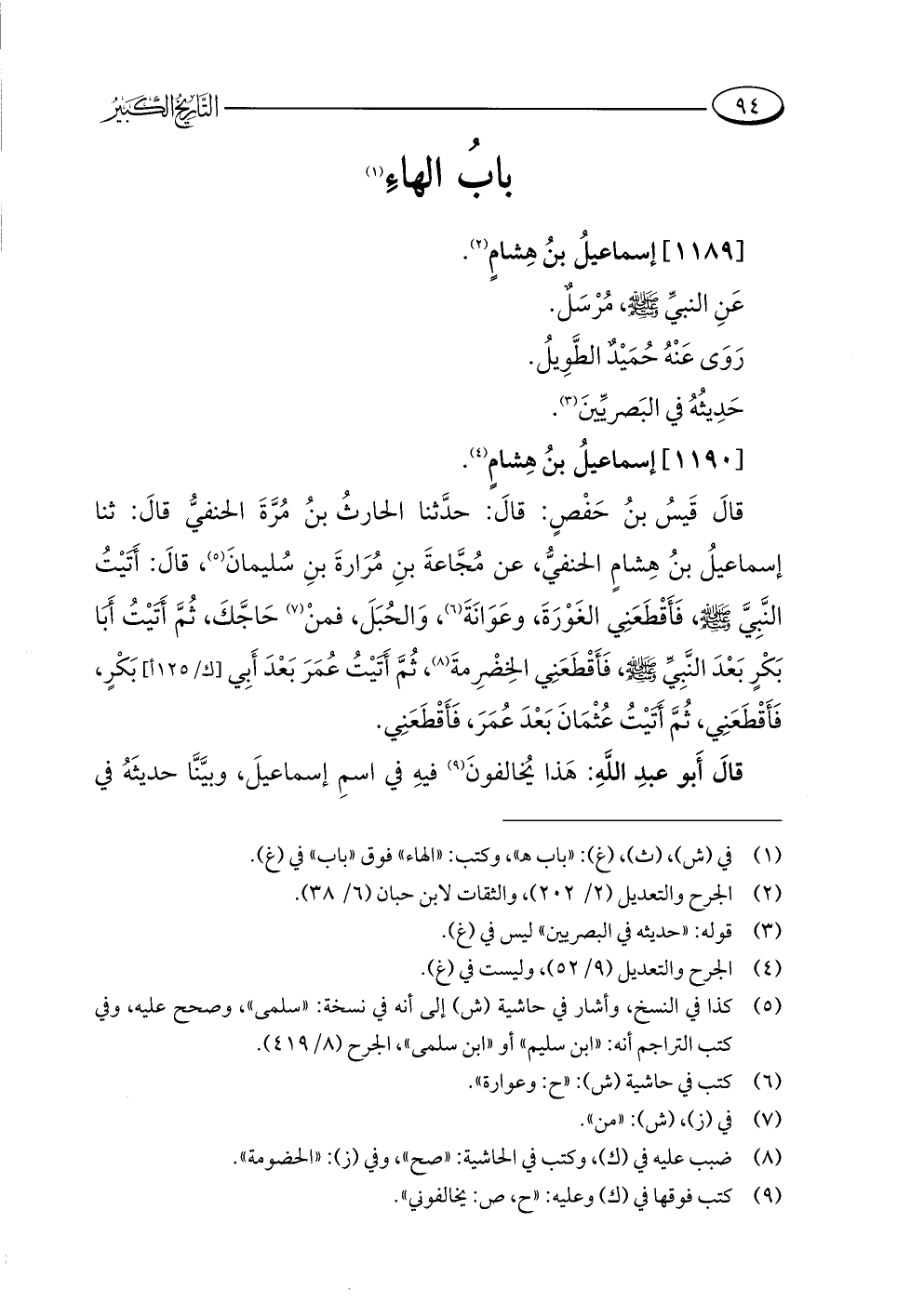 (¬٥) كذا في النسخ، وأشار في حاشية (ش) إلى أنه في نسخة: "سلمى"، وصحح عليه، وفي كتب التراجم أنه: "ابن سليم" أو "ابن سلمى"، الجرح (٨/ ٤١٩).