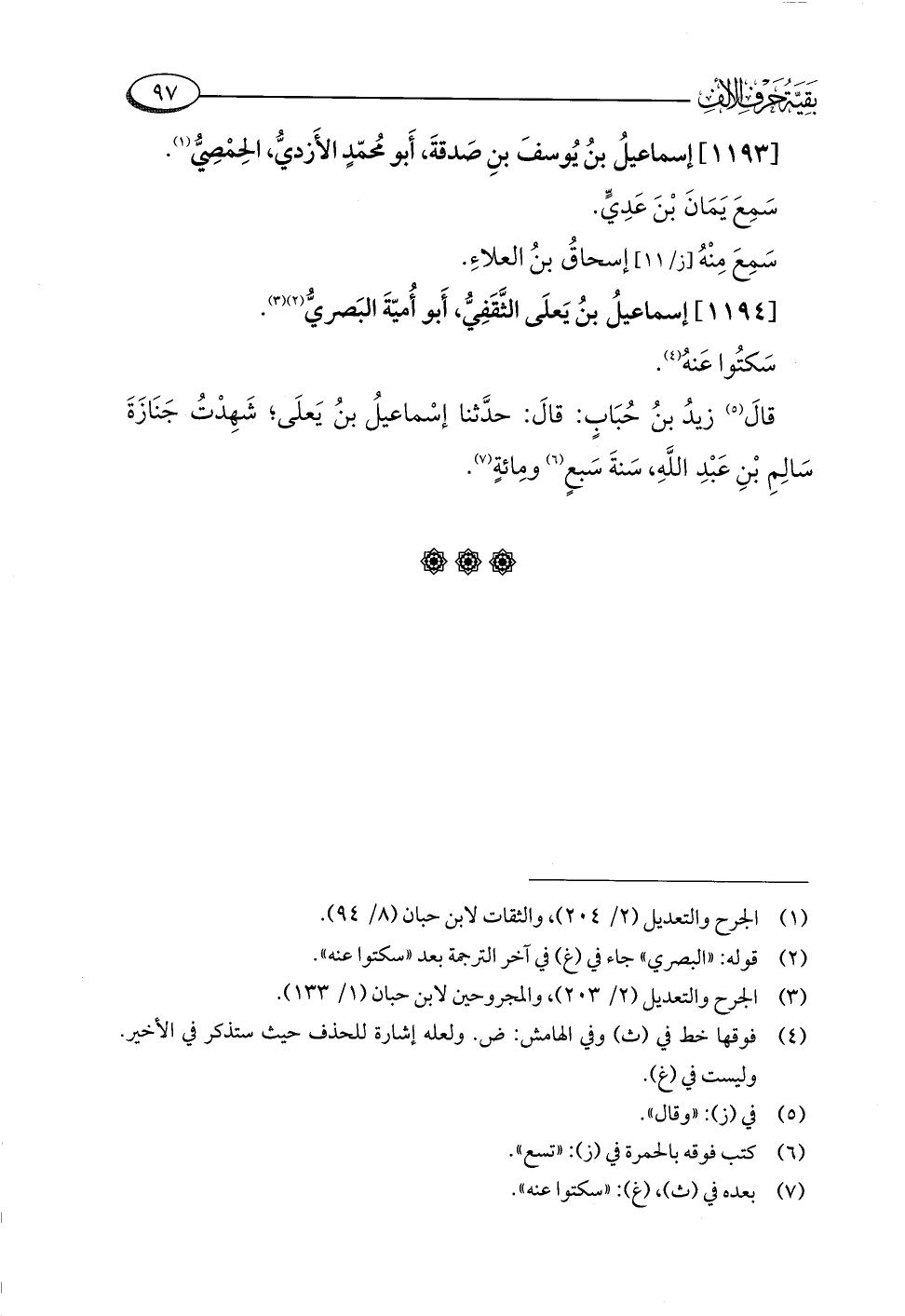 (¬٣) الجرح والتعديل (٢/ ٢٠٣)، والمجروحين لابن حبان (١/ ١٣٣).