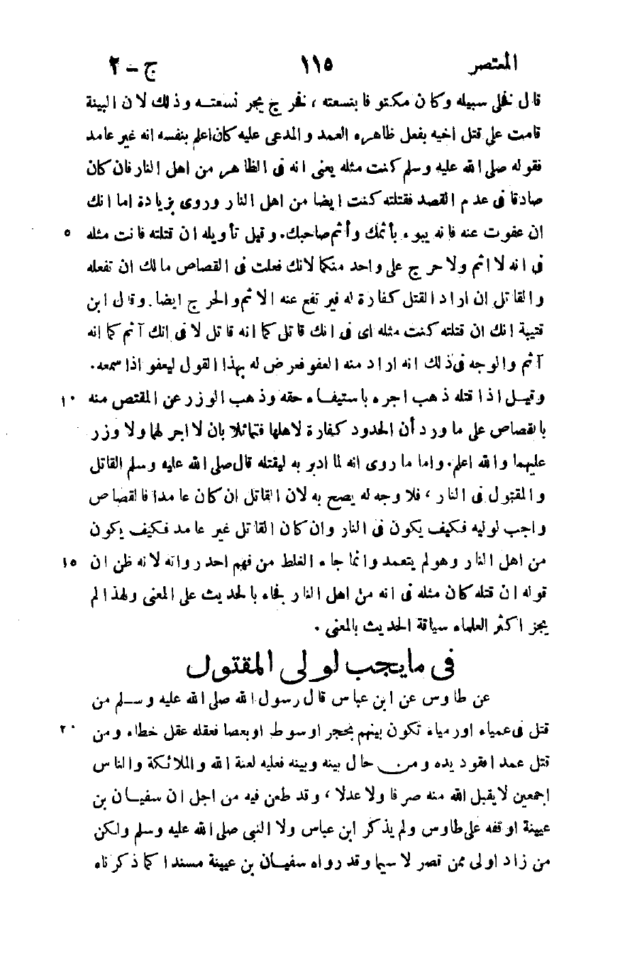 عن طاوس عن ابن عباس قال رسول الله صلى الله عليه وسلم: "من قتل في عمياء أو رمياء تكون بينهم بحجر أو سوط أو بعصا فعقله عقل خطاء ومن قتل عمدا فقود يده ومن حال بينه وبينه فعليه لعنة الله والملائكة والناس أجمعين لا يقبل الله منه صرفا ولا عدلا" وقد طعن فيه من أجل أن سفيان بن عيينة أوقفه على طاوس ولم يذكر ابن عباس ولا النبي صلى الله عليه وسلم ولكن من زاد أولى ممن قصر لا سيما وقد رواه سفيان بن عيينة مسندا كما ذكرناه
