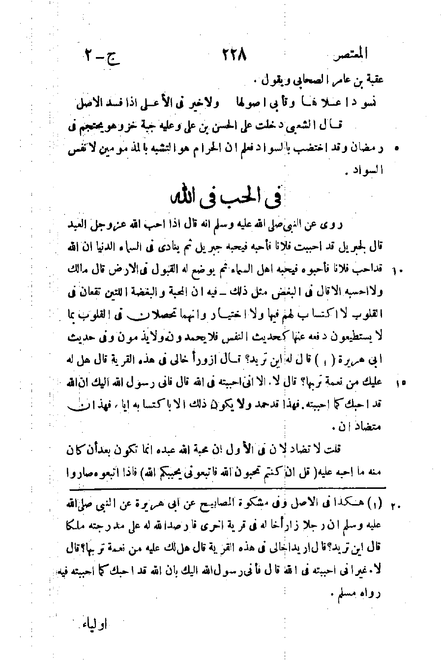 1 هكذا في الأصل وفي مشكوة المصابيح عن أبي هريرة عن النبي صلى الله عليه وسلم أن رجلا زار أخا له في قرية أخرى فأرصد الله له على مدرجته ملكا قال: أين تريد؟ قال: أريد أخا لي في هذه القرية قال: هل لك عليه من نعمة تربها؟ قال: لا، غير أني أحببته في الله قال: فإنى رسول الله إليك بأن الله قد أحبك كما أحببته فيه، رواه مسلم.