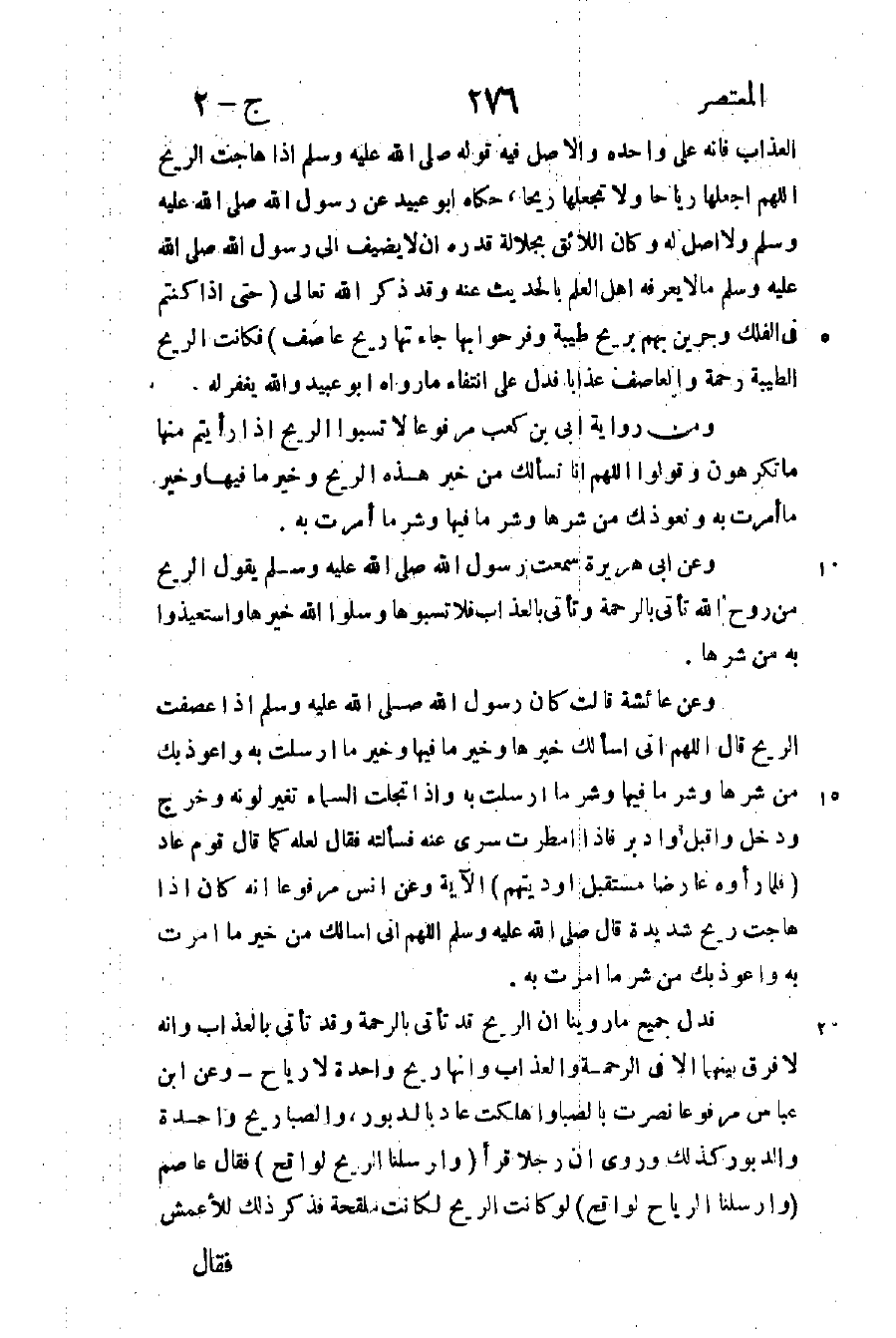 العذاب فإنه على واحدة والأصل فيه قوله صلى الله عليه وسلم: "إذا هاجت الريح اللهم اجعلها رياحا ولا تجعلها ريحا" حكاه أبو عبيد عن رسول الله صلى الله عليه وسلم ولا أصل له وكان اللائق بجلالة قدره أن لا يضيف إلى رسول الله صلى الله عليه وسلم ما لا يعرفه أهل العلم بالحديث عنه وقد ذكر الله تعالى: {حَتَّى إِذَا كُنْتُمْ فِي الْفُلْكِ وَجَرَيْنَ بِهِمْ بِرِيحٍ طَيِّبَةٍ وَفَرِحُوا بِهَا جَاءَتْهَا رِيحٌ عَاصِفٌ} فكانت الريح الطيبة رحمة والعاصف عذابا فدل على انتفاء ما رواه أبو عبيد والله يغفر له.