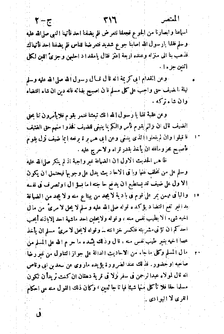 وعن عقبة قلنا: يا رسول الله إنك تبعثنا فنمر بقوم فلا يأمرون لنا بحق الضيف قال: "إن نزلتم بقوم فأمروا لكم بما ينبغي للضيف فخذوا منهم حق الضيف فاقبلوا وإن لم يفعلوا الذي ينبغي". وعن أبي هريرة يرفعه أيما ضيف نزل بقوم فأصبح محروما فله أن يأخذ بقدر قراه ولا حرج عليه.
