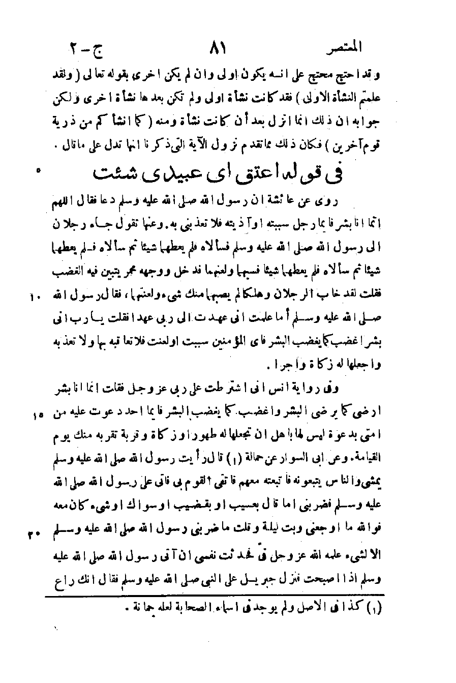 وفي رواية أنس أني اشترطت على ربي عز وجل فقلت إنما أنا بشر أرضى كما يرضى البشر وأغضب كما يغضب البشر فإيما أحد دعوت عليه من أمتي بدعوة ليس لها بأهل أن تجعلها له طهورا وزكاة وقربة تقربه منك يوم القيامة وعن أبي السوار عن حمالة1 قال: رأيت رسول الله صلى الله عليه وسلم يمشي والناس يتبعونه فأتبعته معهم فاتقى القوم بي فأتى علي رسول الله صلى الله عليه وسلم فضربني أما قال: بعسيب أو بقضيب أو سواك أو شيء كان معه فوالله ما أوجعني وبت ليلة وقلت: ما ضربني رسول الله صلى الله عليه وسلم إلا لشيء علمه الله عز وجل في فحدثت نفسي أن آتي رسول الله صلى الله عليه وسلم إذا أصبحت فنزل جبريل على النبي صلى الله عليه وسلم فقال: إنك راع