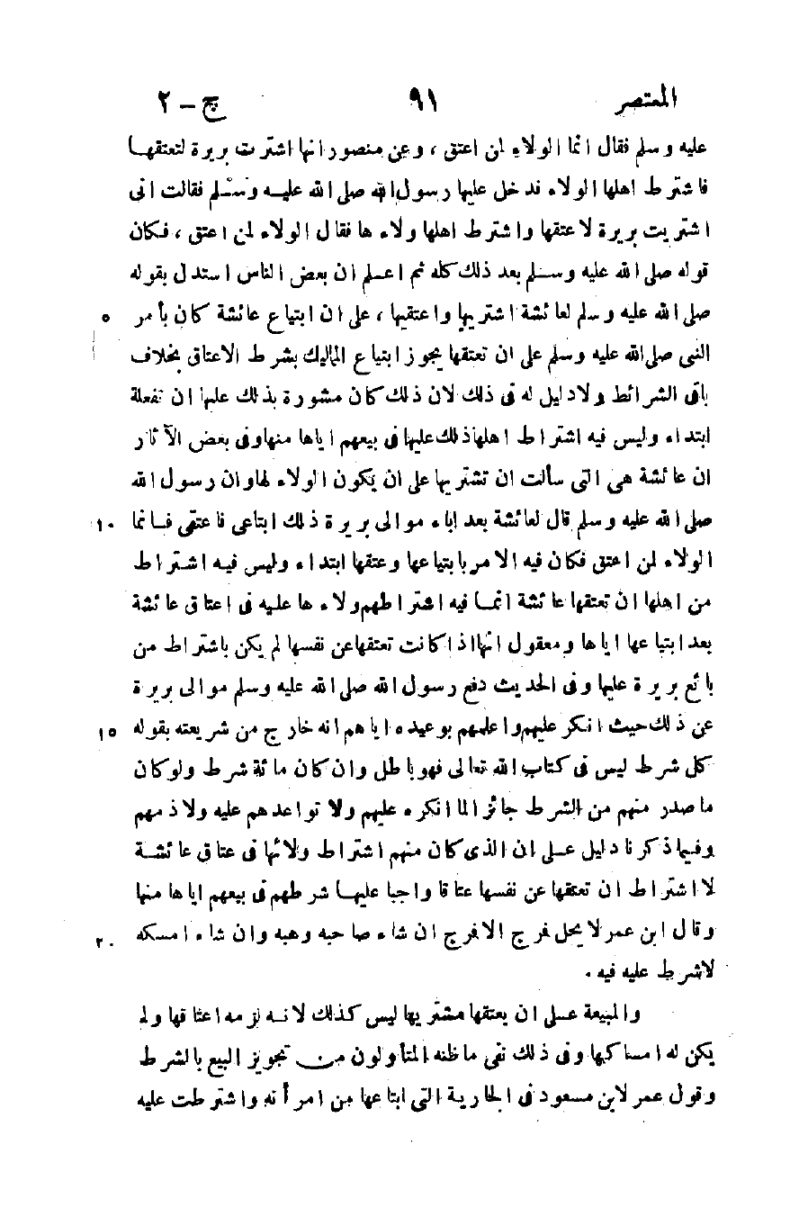 والمبيعة على أن يعتقها مشتريها ليس كذلك لأنه لزمه اعتاقها ولم يكن له إمساكها وفي ذلك نفى ما ظنه المتأولون من تجويز البيع بالشرط وقول عمر لابن مسعود في الجارية التي ابتاعها من أمرأته واشترطت عليه خدمتها لا تقريها ولا حد فيها مثنوية يؤكد ما قلنا أيضا.