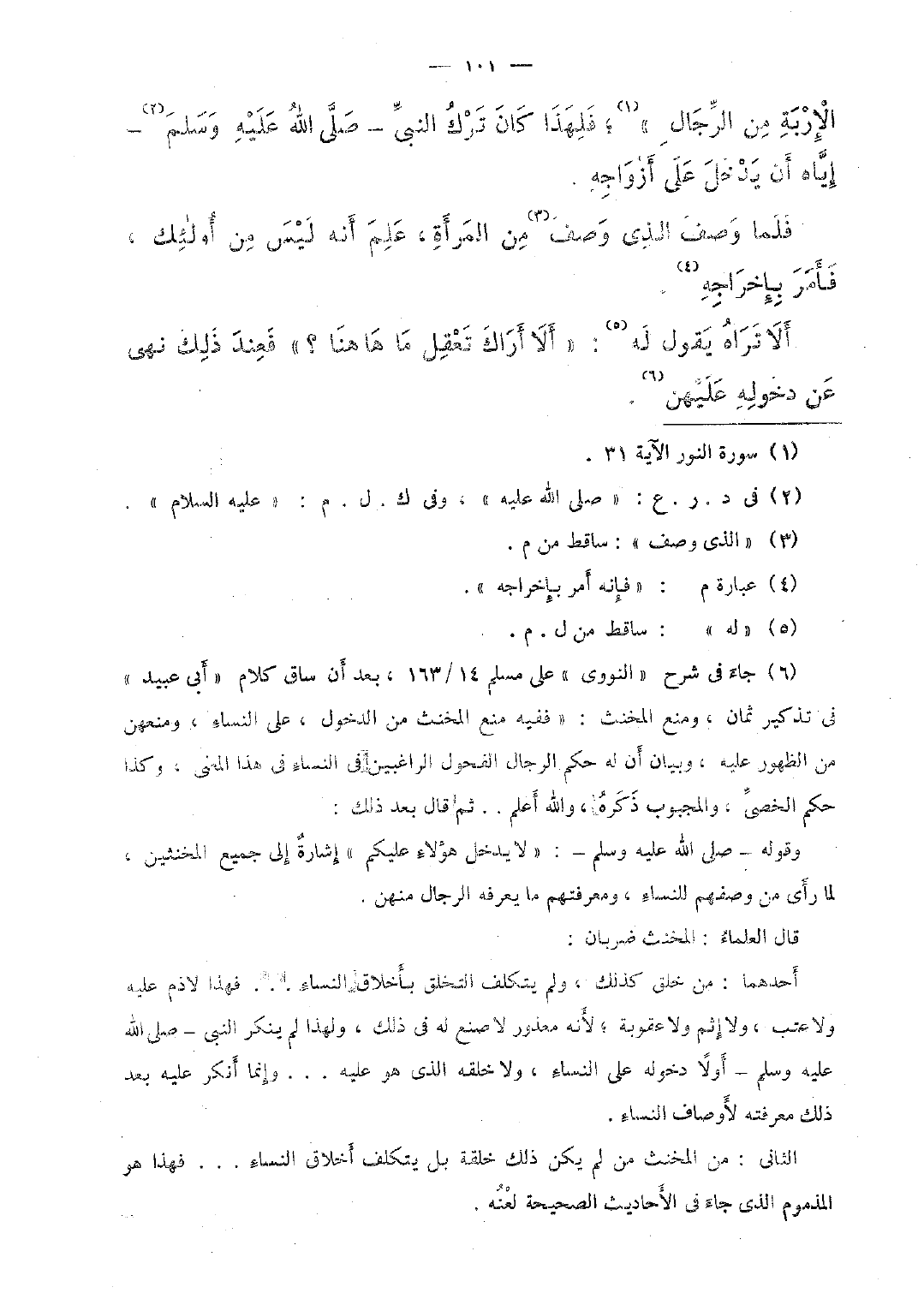 الإربة من الرِّجال"؛ فلهذا كان ترك النبىّ -صلّى الله عليه وسلم- إيَّاه أن يدخل على أواجه.