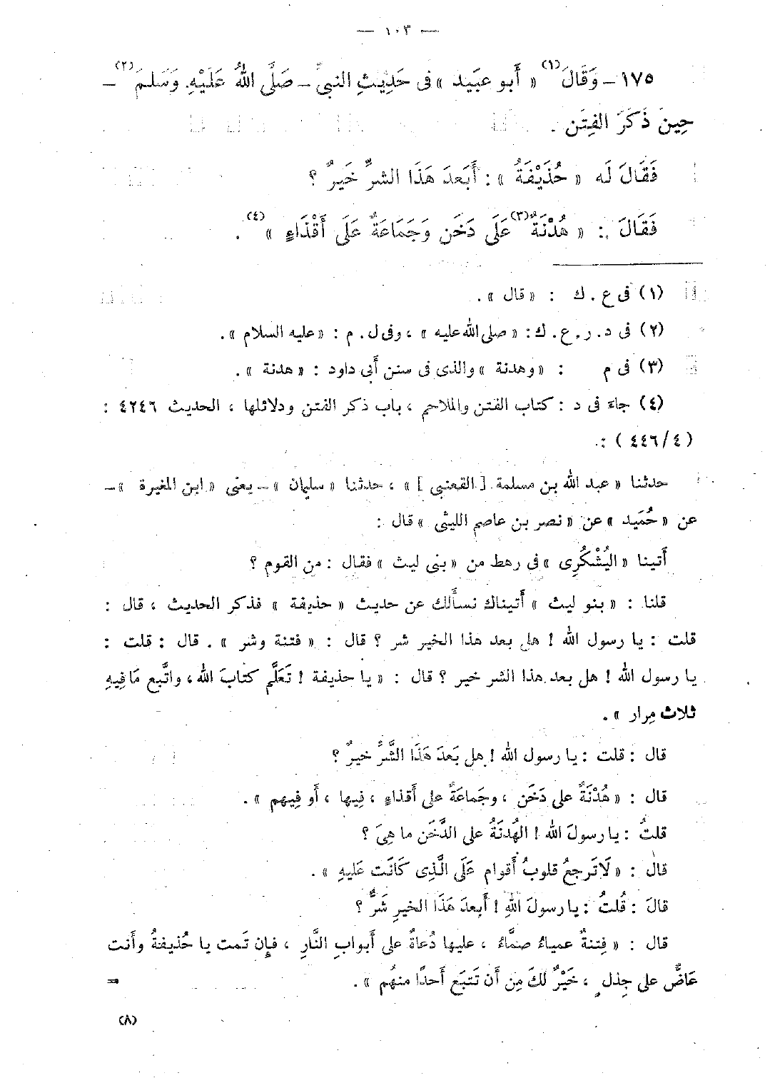175 - وقال "أبو عبيد" فى حديث النبىّ -صلّى الله عليه وسلم- حين ذكر الفتن.