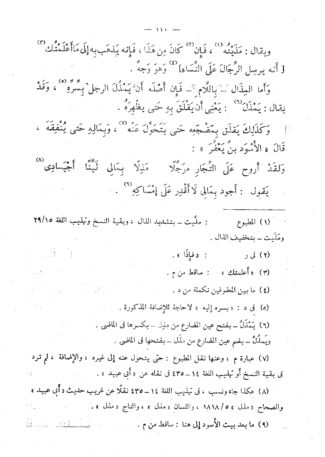 ويقال: مذيته، فإن كان من هذا، فإنه يذهب به إلى ما أعلمتك [أنه يرسل الرِّجال على النِّساء] وهو وجهٌ.
