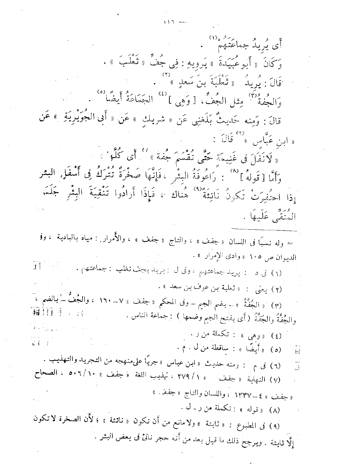 وكان "أبو عبيدة" يرويه: فى جفِّ "ثعلب".