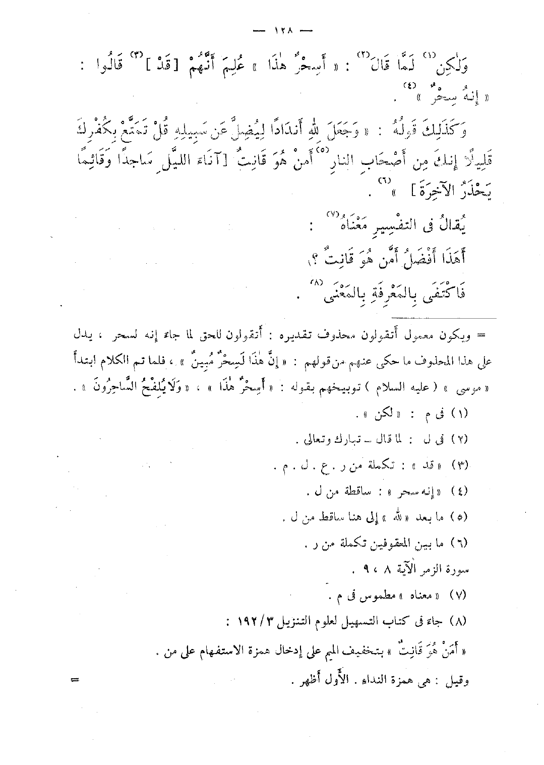 وكذلك قوله: "وجعل الله أندادًا ليضلَّ عن سبيله قل تمتَّع بكفرك فليلًا إنك من أصحاب النار أمن هو قانتٌ [آناء الليَّل ساجدًا وقائمًا يحذر الآخرة].