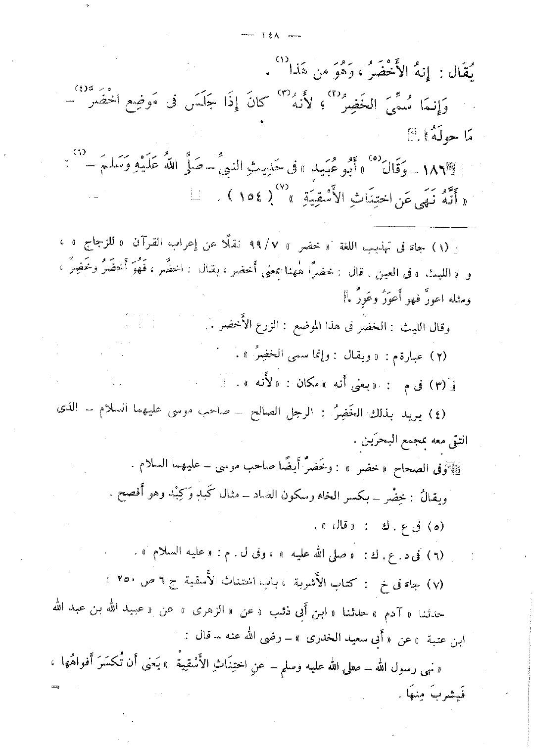 186 - وقال "أبو عبيدٍ" فى حديث النَّبيَّ - صلَّى الله عليه وسلَّم-: "أنه نهى عن اختناث الأشقية" (154).