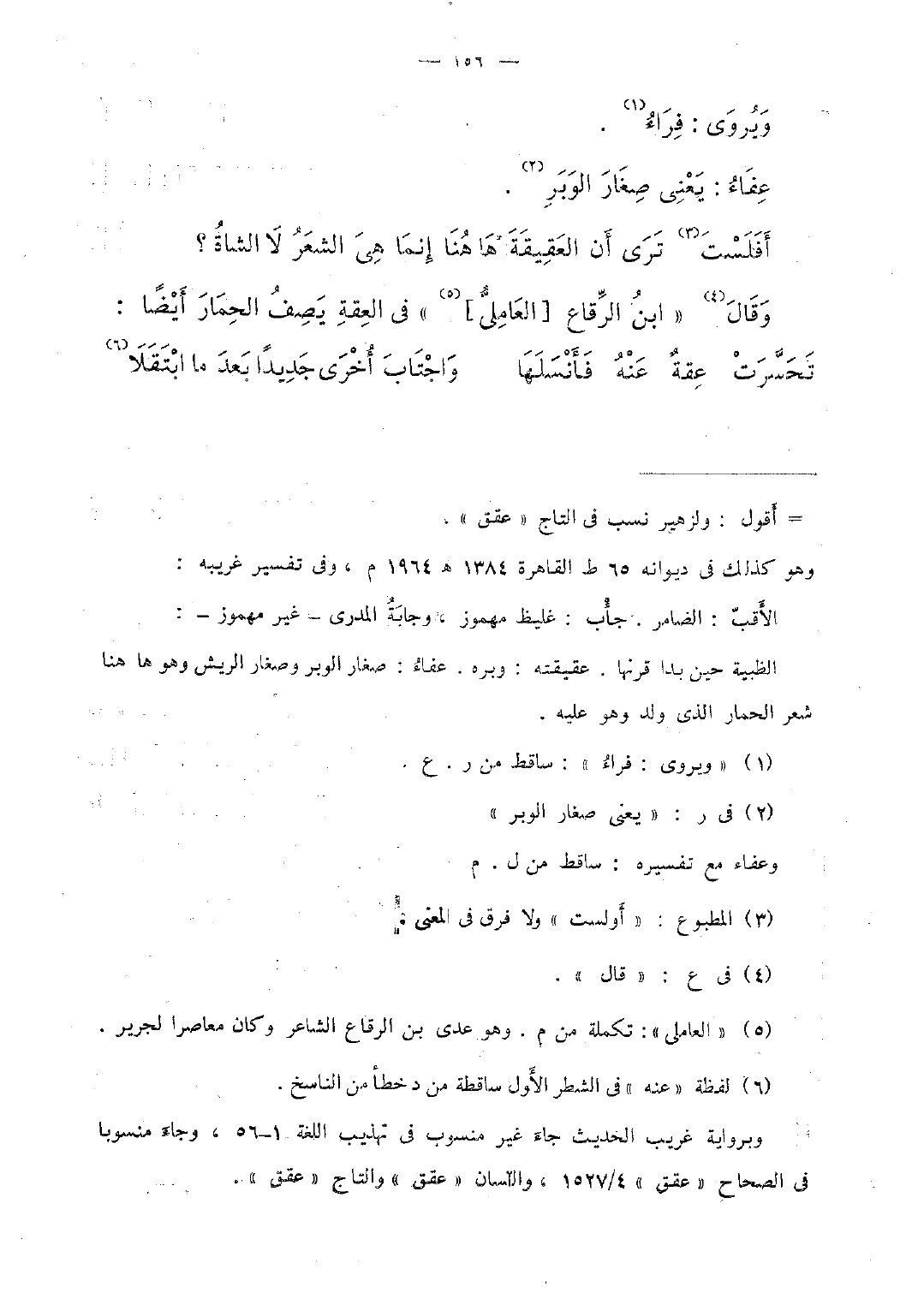 وقال "ابن الرِّقاع [العاملىُّ] " فى العقة يصف الحمار أيضًا:
