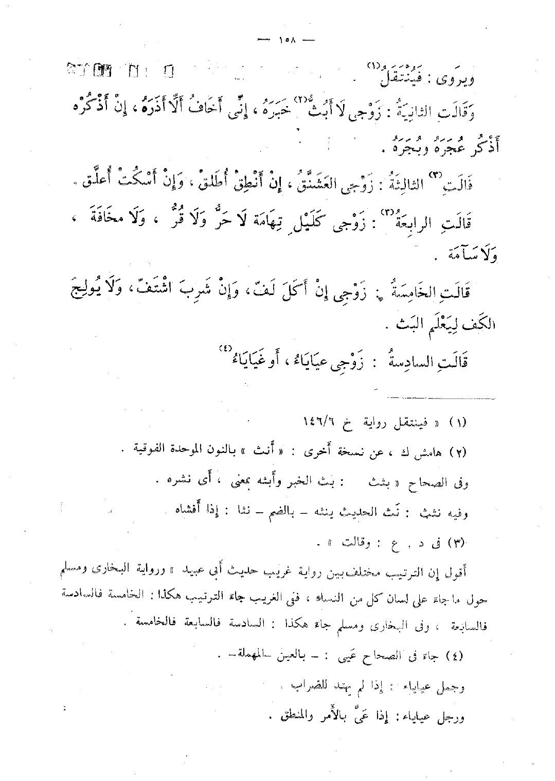 وقالت الثانية: زوجى لا أبثُّ خبرة، إنِّى أخاف ألَّا أذره، إن أذكره أذكر عجره وبجره.