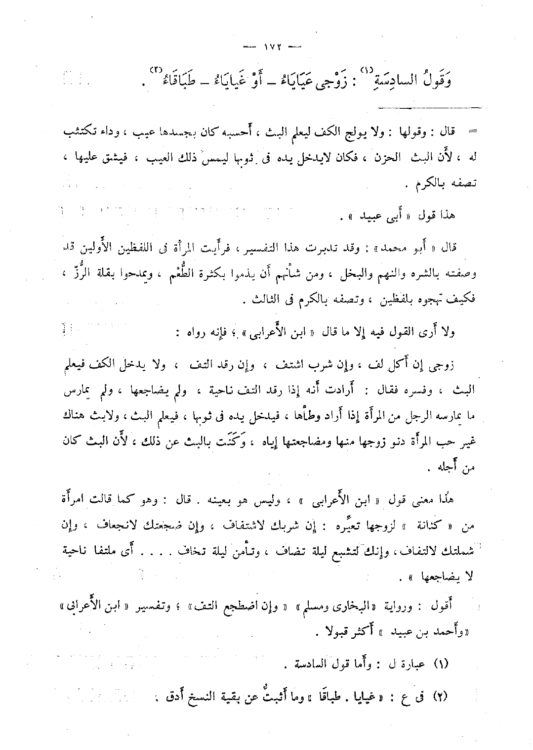 وقول السادسة: زوجى عياياء- أو غياياء- طباقاء.