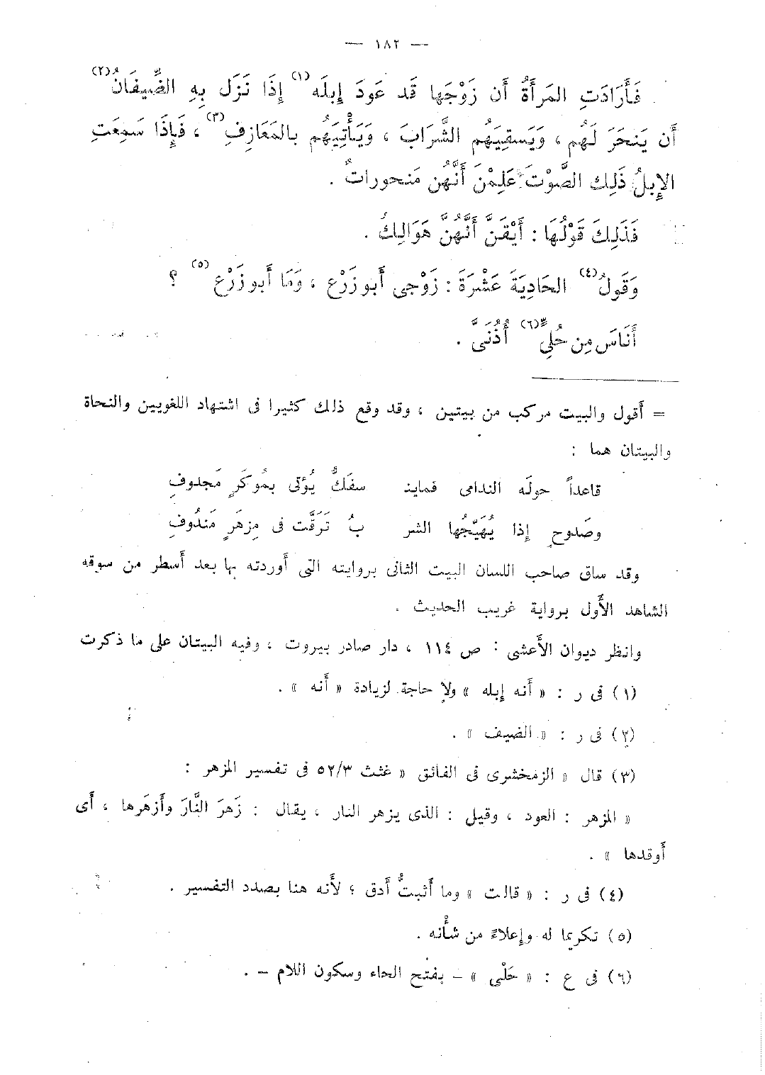 فأرادت المرأة أن زوجها قد عود إبله إذا نزل به الضِّيفان أن ينحر لهم, ويسقيهم الشَّراب, ويأتيهم بالمعازف, فإذا سمعت الإبل ذلك الصَّوت علمن أنَّهن منحورات.