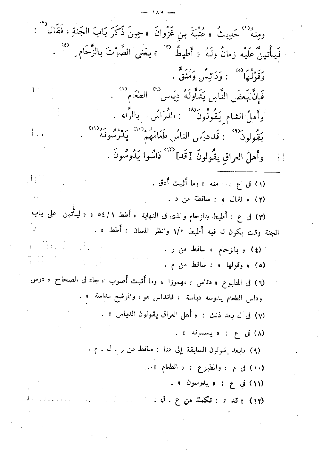 وأهل الشام يقولون: الدِّراس- بالرَّاء.