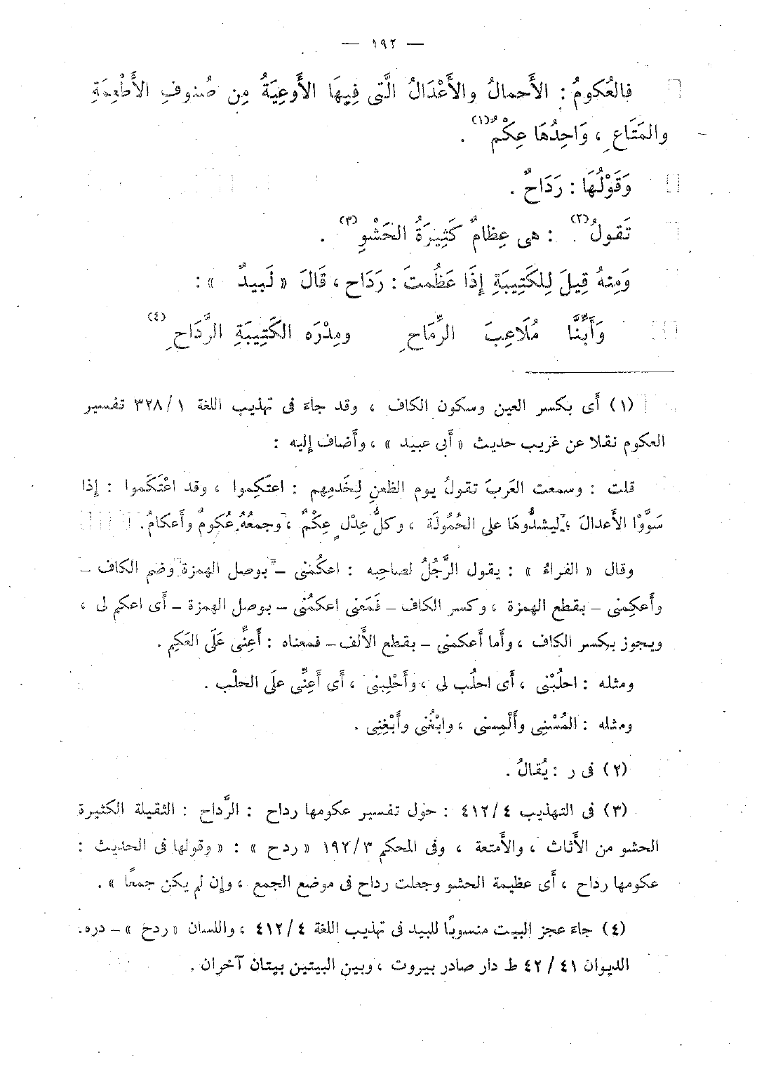 ومنه قيل للكتيبة إذا عظمت: رداح, قال "لبيد":
