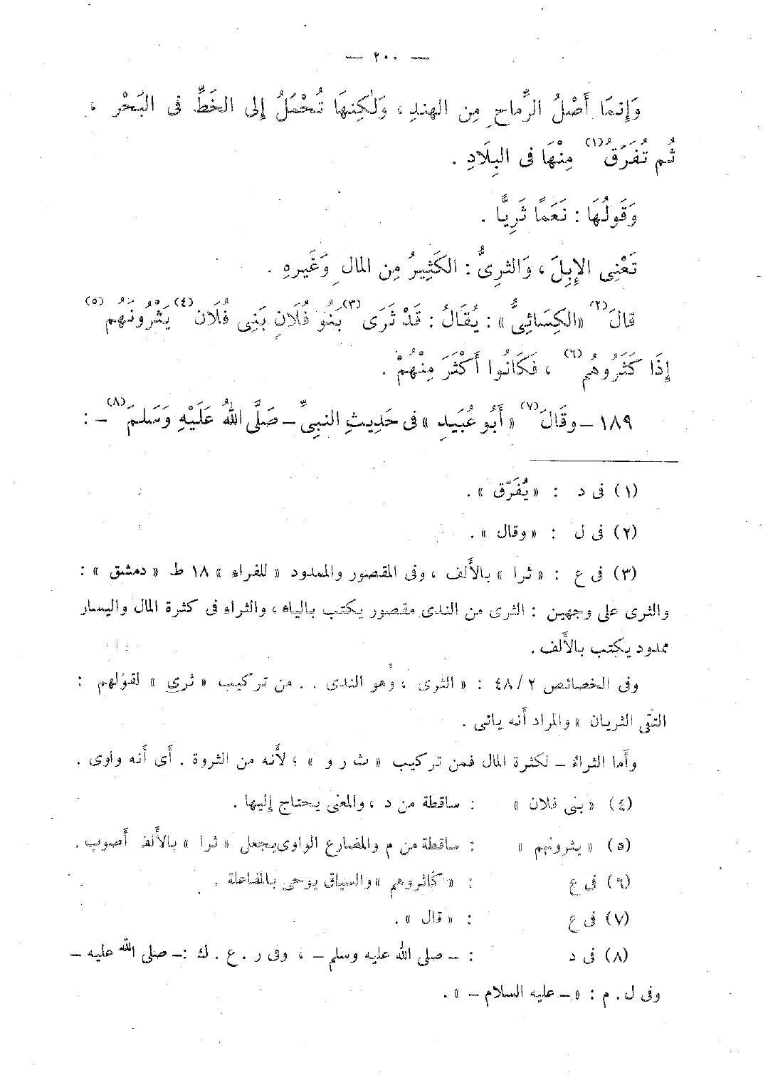 189 - وقال "أبو عبيد" فى حديث النبىَّ -صلَّى الله عليه وسلم-:
