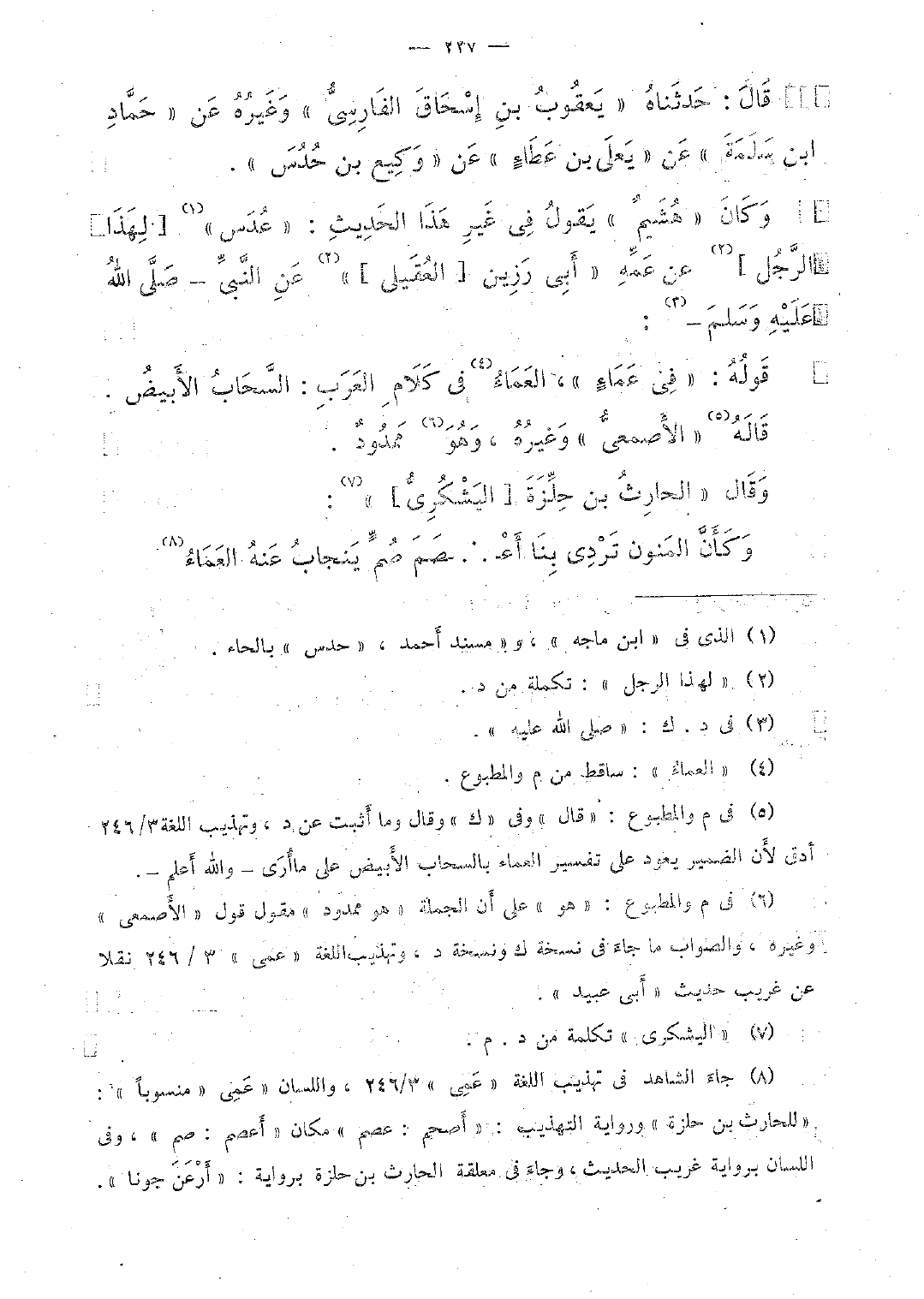 وكان "هشيم" يقول فى غير هذا الحديث: "عدس" [لهذا الرَّجل] عن عمِّه "أبى رزين [العقيلى] " عن النَّبىِّ- صلَّى الله عليه وسلم-: