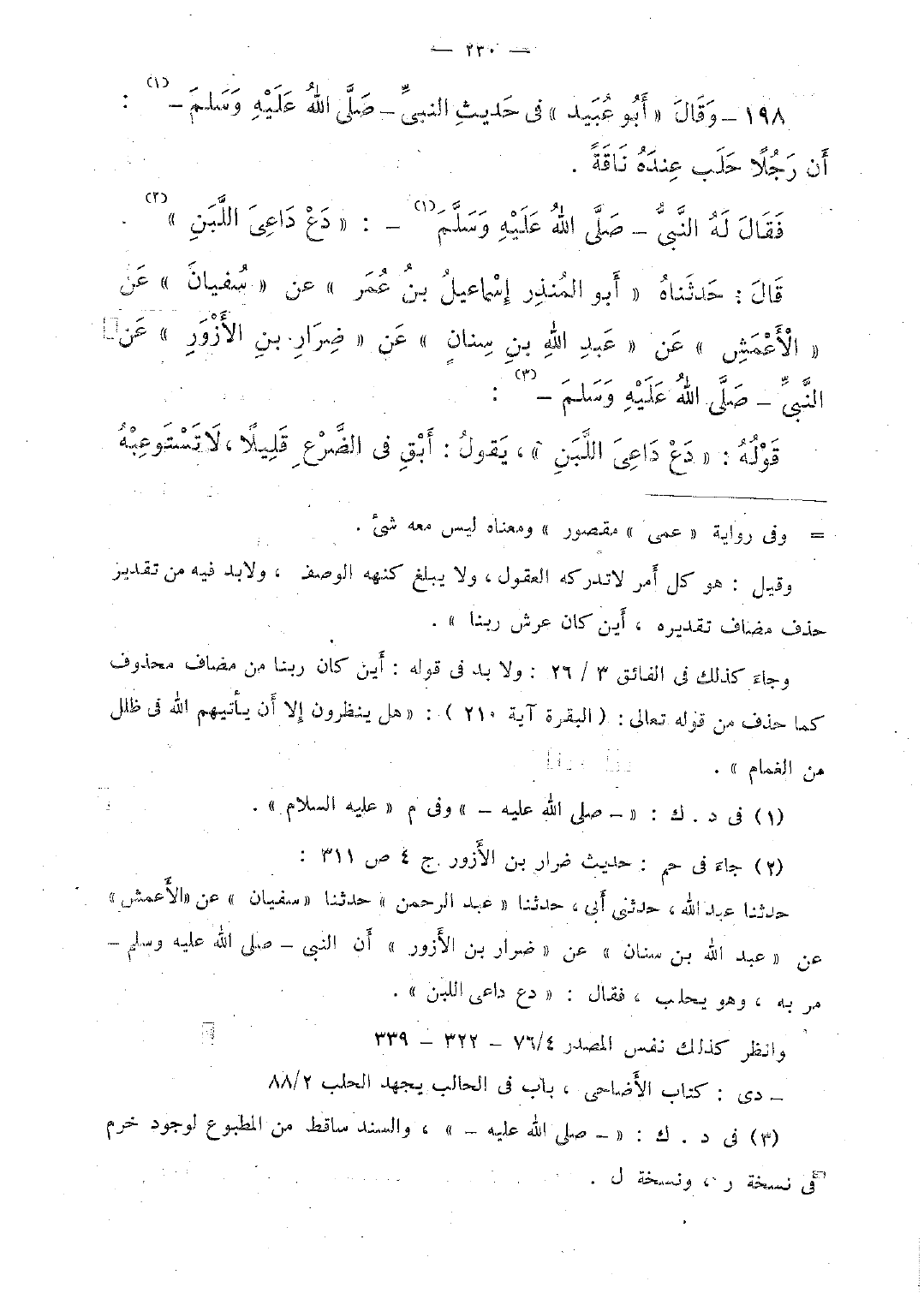 198 - وقال "أبو عبيد" فى حديث النبىِّ- صلَّى الله عليه سلم-: أن رجلًا حلب عنده ناقًة.