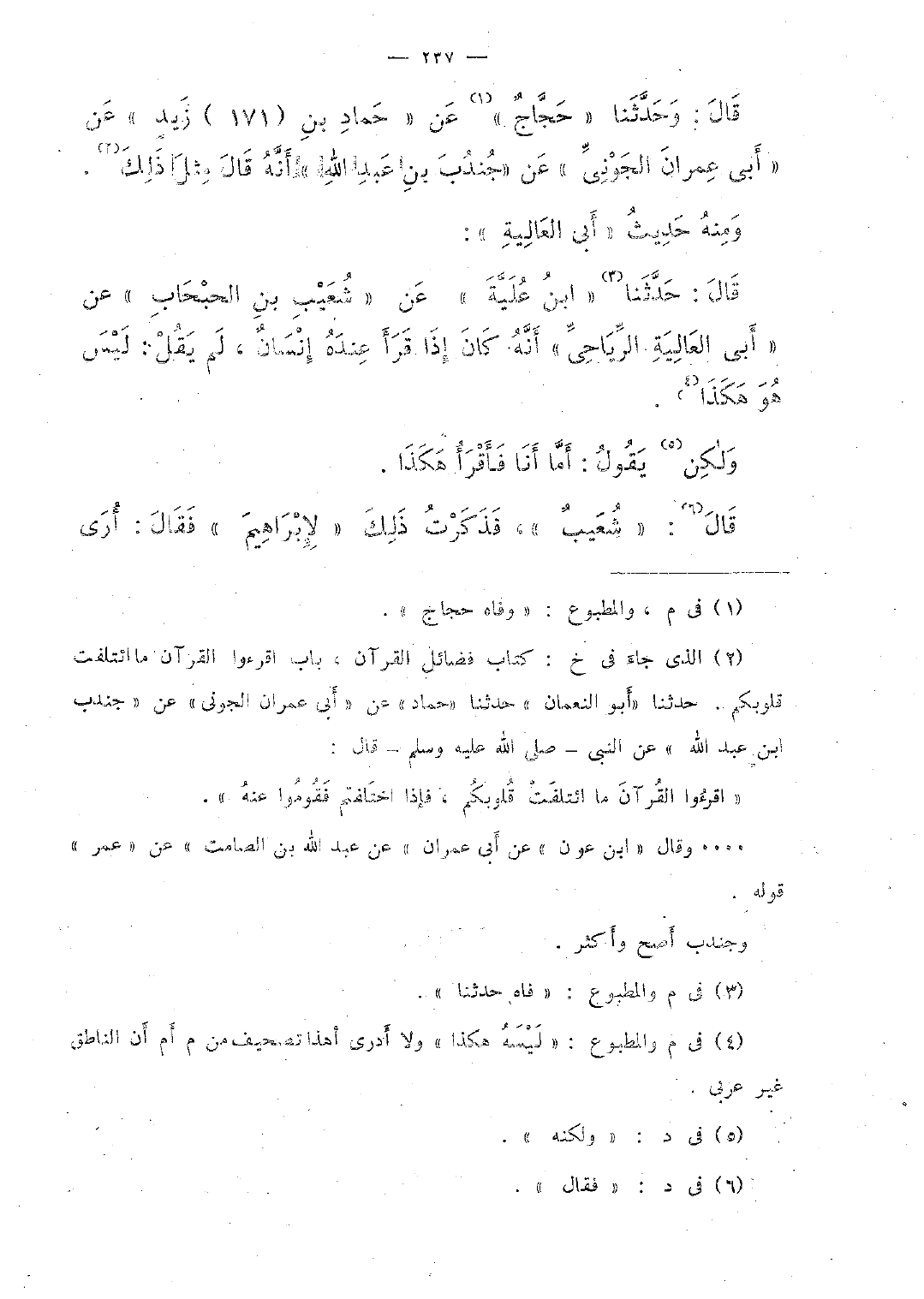 قال: وحدَّثنا "حجَّاج" عن "حماد بن (171) زيد" عن "أبى عمران الجونىِّ" عن "جندب بن عبد الله" أنَّه قال مثل ذلك.