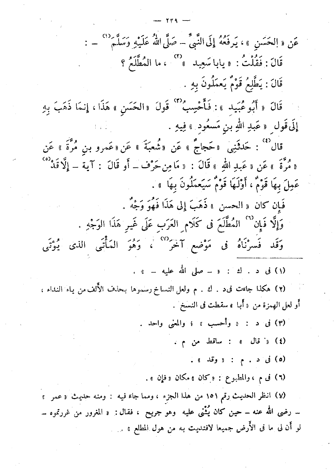 قال "أبو عبيد": فأحسب قول "الحسن هذا, إنما ذهب به إلى قول "عبد الله بن مسعود" فيه.