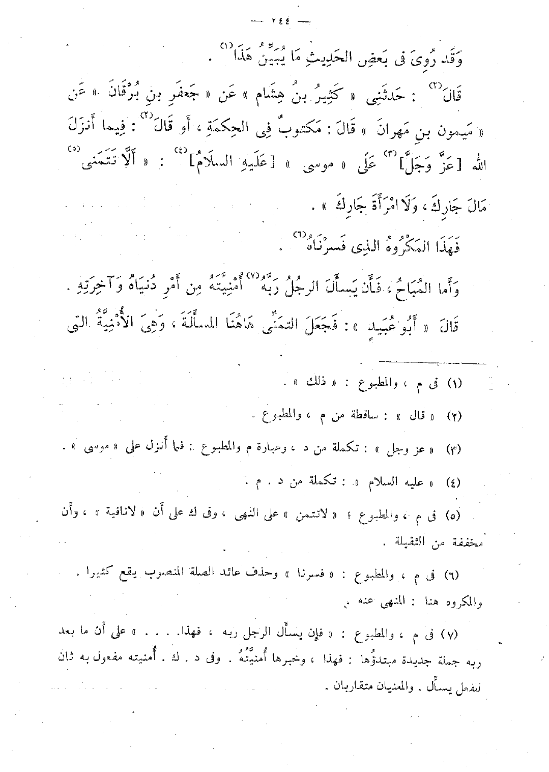 قال "أبو عبيد": فجعل التمنَّى هاهنا المسألة, وهى الأمنية التى