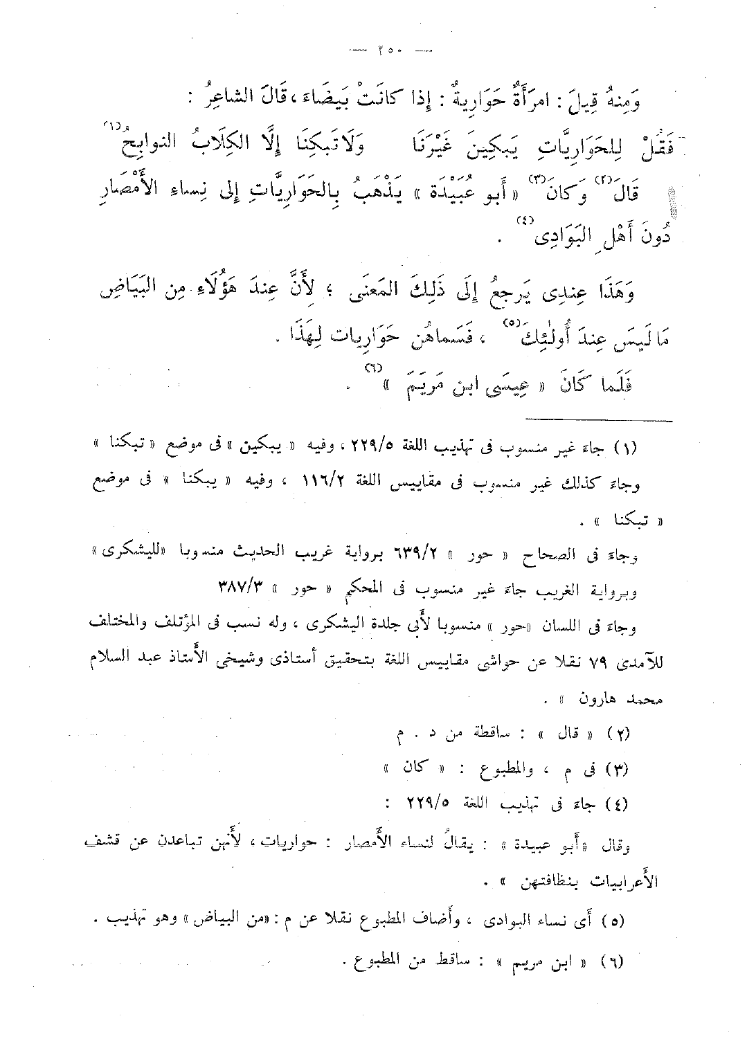 قال وكان "أبو عبيدة" يذهب بالحواريَّات إلى نساء الأمصار دون أهل البوادى.