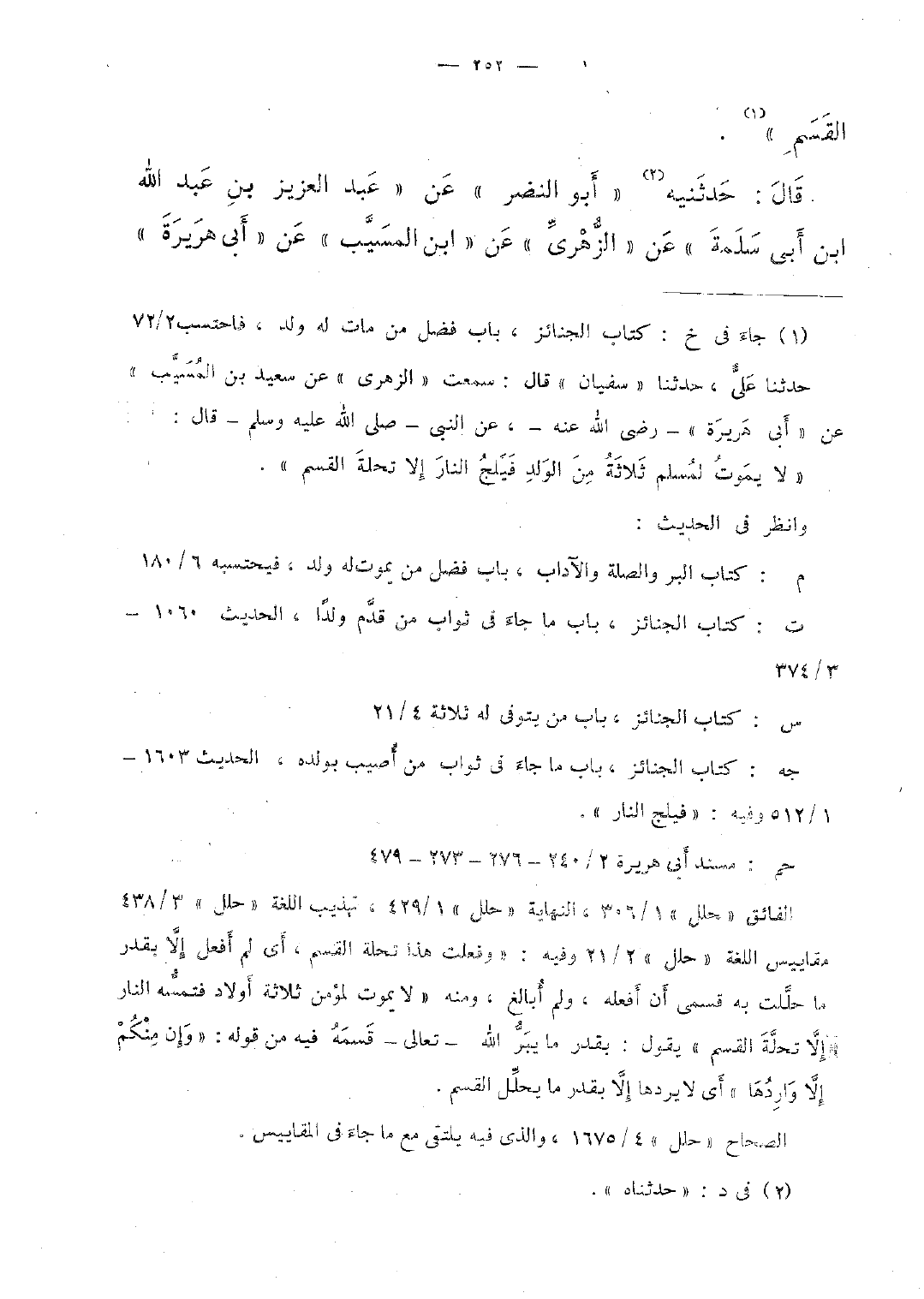 قال: حدثنيه "أبو النضر" عن "عبد العزيز بن عبد الله ابن أبى سلمة" عن "الزُّهرى" عن "ابن المسيَّب" عن "أبى هريرة"