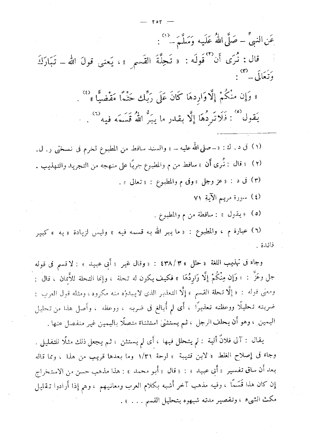 قال: نرى أن قوله: "تحلَّة القسم", يعنى قول الله- تبارك وتعالى-: