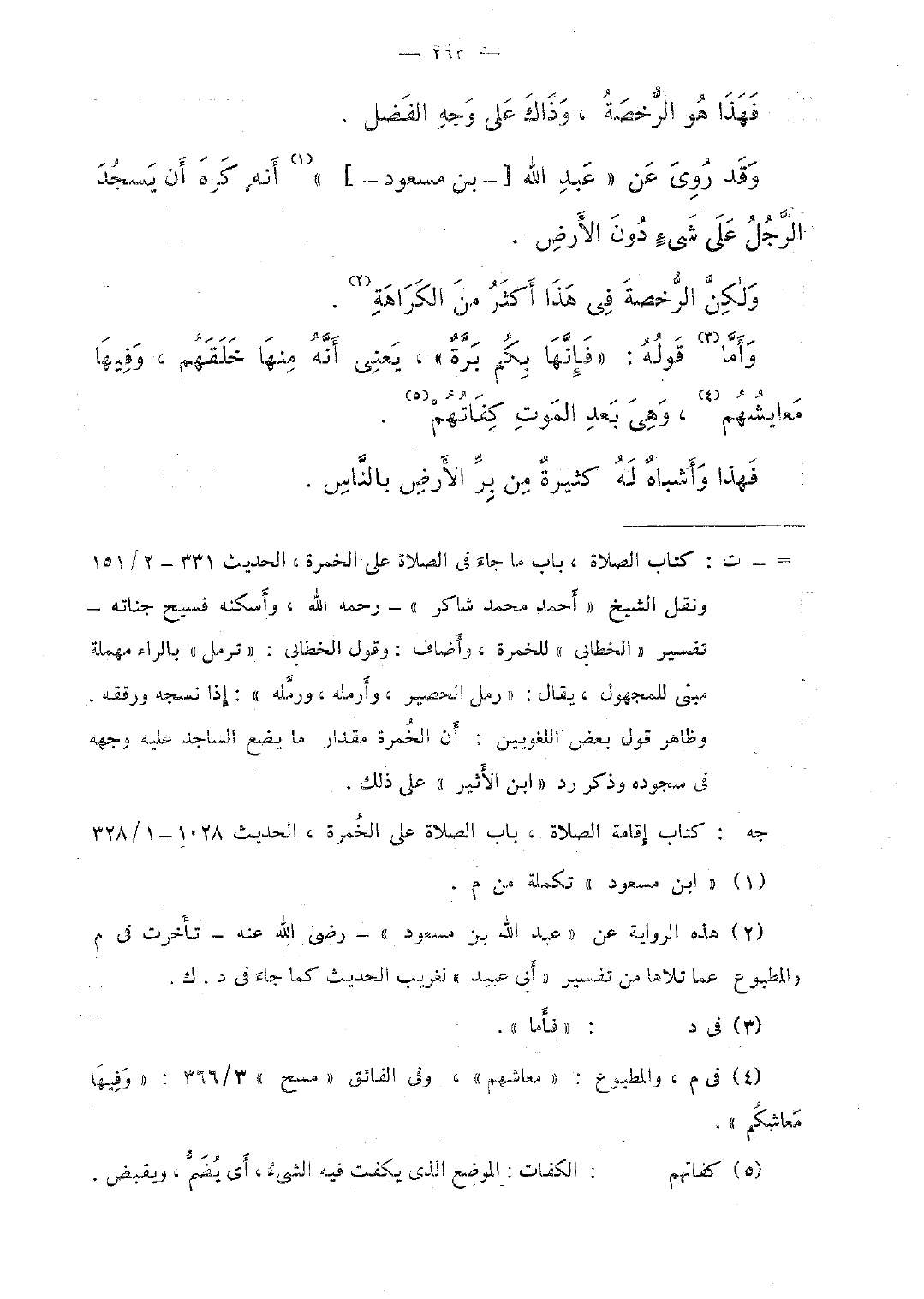وقد روى عن "عبد الله [-بن مسعود-] " أنه كره أن يسجد الرجل على شيءٍ دون الأرض.