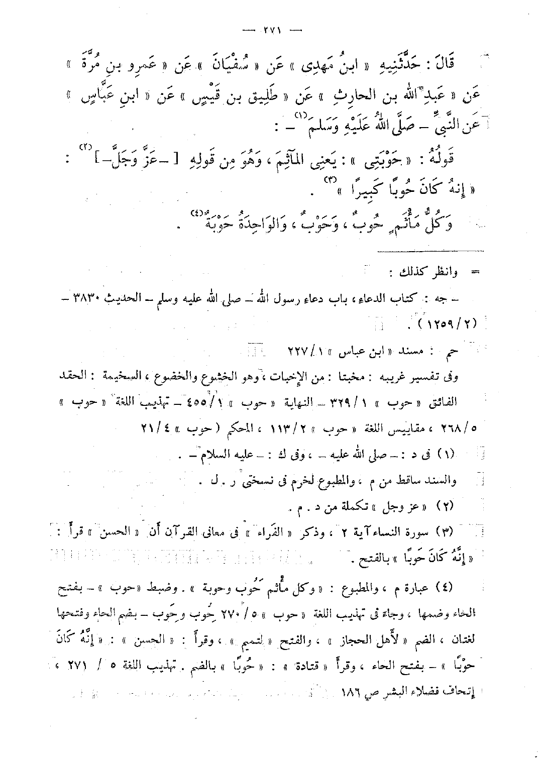 قال: حدّثنيه "ابن مهدى" عن "سفيان" عن "عمرو بن مرّة" عن "عبد الله بن الحارث" عن "طليق بن قيسٍ" عن "ابن عباسٍ" عن النّبيّ -صلّى الله عليه وسلم-: